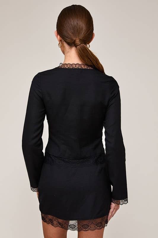 Lace Trim Detail Skirt. This stylish set features delicate lace trim for an added touch of charm. Perfect for any occasion, this set is sure to turn heads and make a statement.